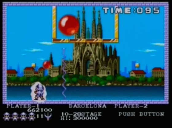Los creadores del Pang eran unos adelantados a su tiempo y no solo porque idearan un videojuego que ha creado escuela. En la pantalla de Barcelona, no tuvieron reparos en poner una imagen de la Sagrada Familia de Gaudí ya terminada. Era el final de los años 80 y pensarían "¿cuánto más pueden tardar en acabarla?".