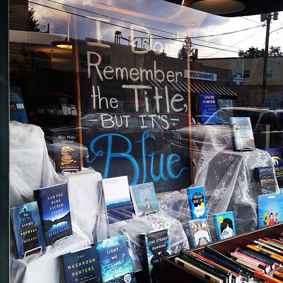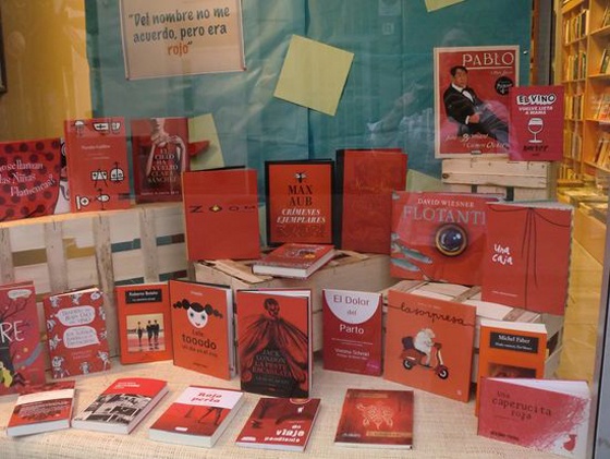Cecilia Picún, librera de Librerío de la Plata, nos ha enviado a nuestra página de Facebook una entrada de su blog en la que narra un episodio similar, pero con el color rojo y que incluye una fotografía del escaparate preparado para la ocasión en el mes de abril.