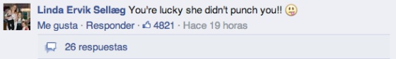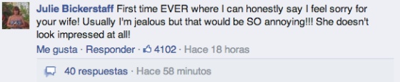1. "Es la primera vez que puedo decir que lo siento mucho por tu esposa. Suelo estar celosa de ella pero es que esto debe ser tan molesto!!!! No parece impresionada en absoluto"
