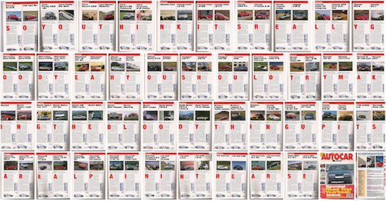 De todas formas, la posible obra maestra del género es la que hizo James May en 1980, que utilizó las grandes iniciales rojas del anuario de la revista Autocar para quejarse de que le hubiera tocado encargarse de este suplemento, un trabajo que al parecer no consideraba gratificante: "So you think it's really good, yeah? You should try making the bloody thing up; it's a real pain in the arse". (Así que piensas que está muy bien, ¿eh? Deberías a probar a montar la maldita cosa, es una verdadera tocadura de narices). Sí, he suavizado la traducción. Y sí, le despidieron.