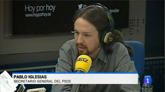 — Ecoteuve (@Ecoteuve) noviembre 18, 2014Resulta que @Pablo_Iglesias_ ya es secretario general de 3 partidos. Podemos, PSOE e IU. Increíble #ProgramaPodemosM4 pic.twitter.com/uJPWBVBNU0