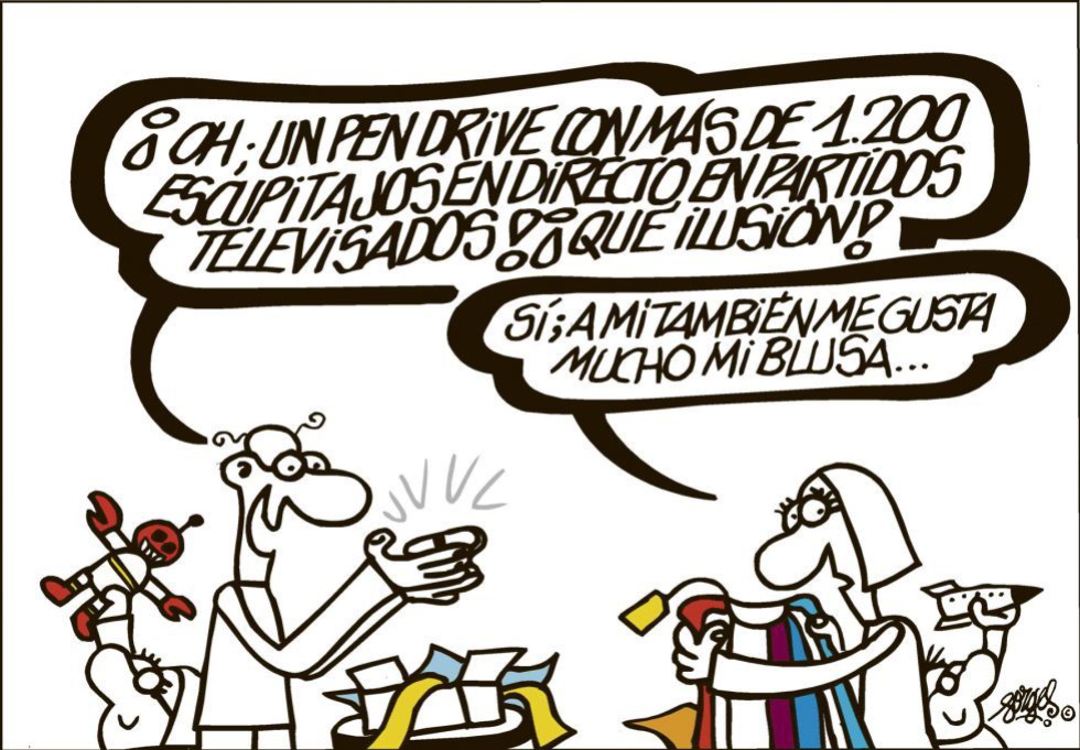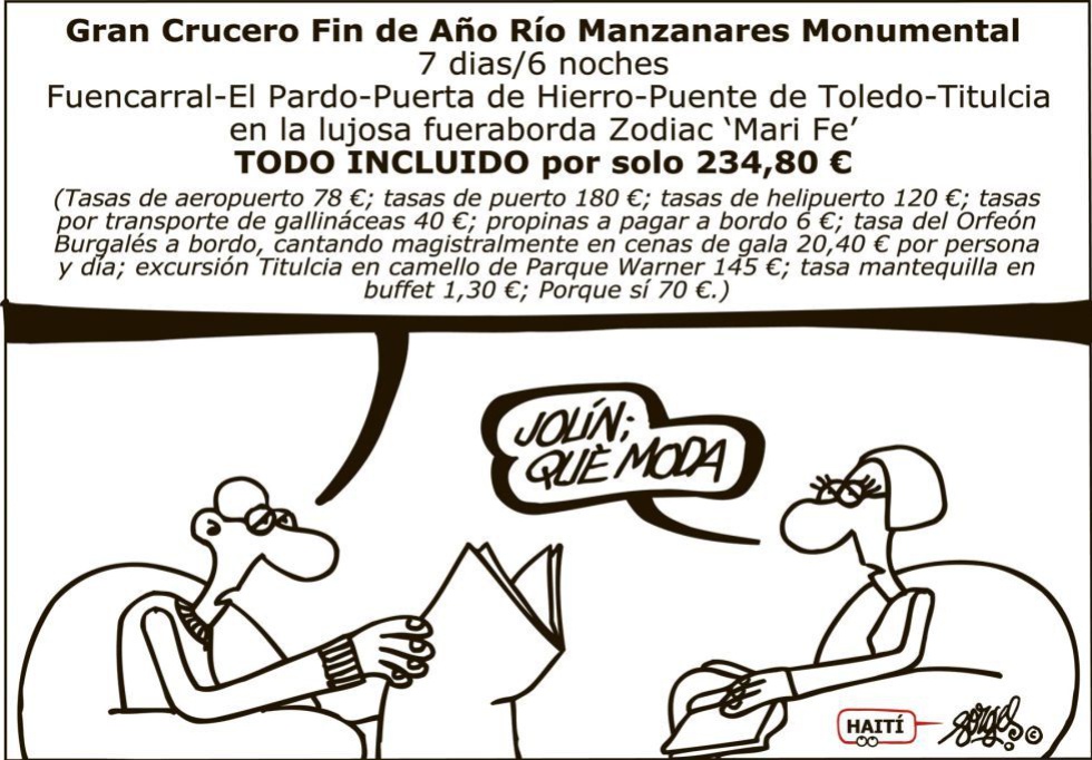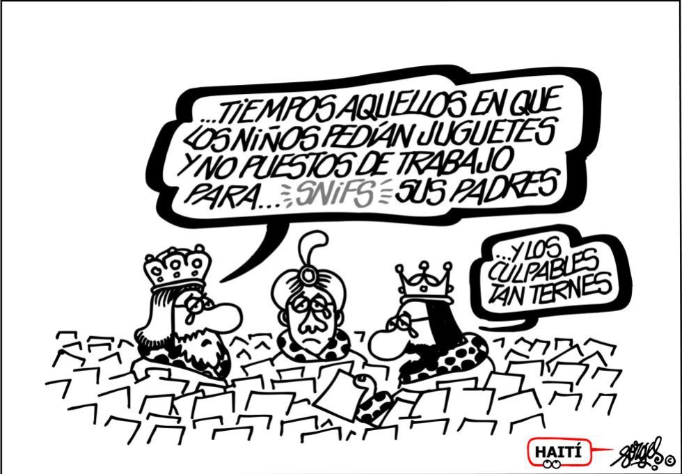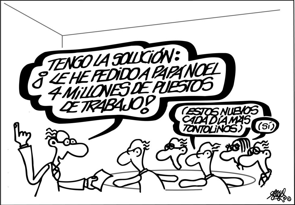 Encontrar el regalo perfecto para el amigo invisible, cenar con la familia con la que no te llevas tan bien o intentar que las malas noticias sobre la crisis que no se acaba no empañen las Navidades puede ser una dura tarea a no ser que te lo tomes con ironía y bastante humor. Todas las situaciones de la Navidad -desde el balance del año que se acaba hasta los propósitos para el año que empieza- se han reflejado en las viñetas de Antonio Fraguas, Forges, en los casi 20 años que lleva publicando en El País. Eso sí, todas estas situaciones en las que muchos se verán reconocidos han pasado por un filtro de humor ácido. Aquí un recopilatorio de píldoras de sabiduría de los últimos años para entender que también sobreviviremos a estas Navidades, pese a todo.