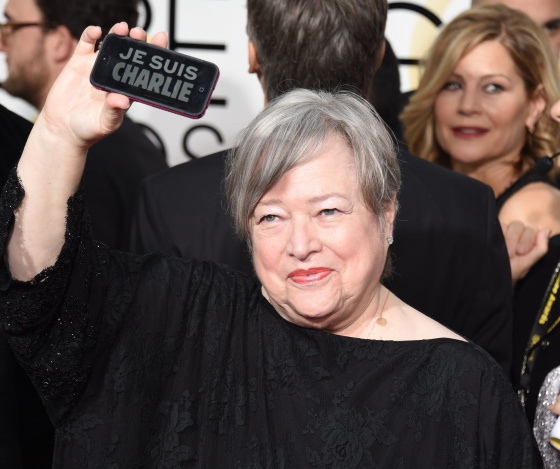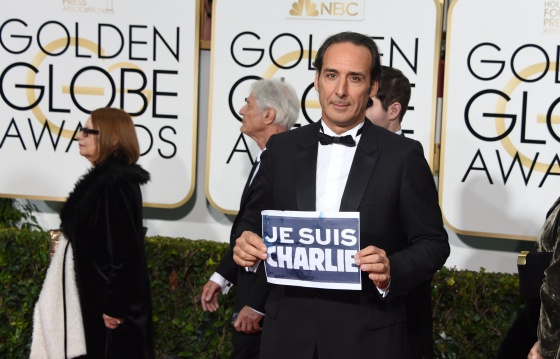 1. En la alfombra roja de los Globos de Oro hubo chapas y carteles con el lema Je Suis Charlie, al más puro estilo 'No a la guerra' en aquella famosa gala de los Goya.