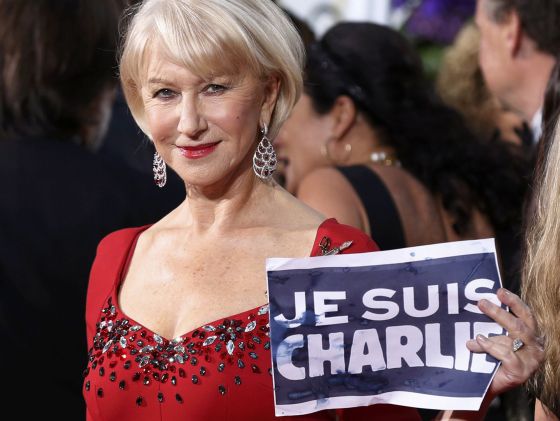 6. El homenaje a Charlie Hebdo: Je suis Charlie, el lema solidario tras los atentados de la semana pasada en Francia, ha sido la referencia ajena al mundo del cine y de la televisión. El discurso de George Clooney, uno de los momentos más aplaudidos de la gala, al detalle de Helen Mirren, que adornó su vestido con una pluma, en referencia a los asesinatos en la sede de la publicación satírica Charlie Hebdo, fueron alguno de los guiños de solidaridad.