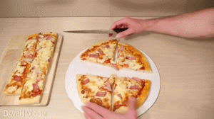 Paso 3: Para que nadie lo note, vuelve a juntar los trozos que te quedan y corta la pizza en porciones triangulares, como sueles hacerlo habitualmente. Ni rastro de robo. Epic win.