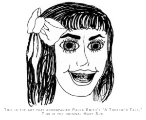 Las muestras de fanfiction conocidas como Mary Sue son aquellas en las que la autora del relato (hay una versión masculina de Mary Sue, llamada Marty Stu, pero es menos icónica) aparece como un personaje más, sobra decir que a menudo con características físicas o psicológicas muy potenciadas con respecto a su modelo real. El caso clásico de esta tendencia data de 1973: Paula Smith escribió el relato paródico A Trekkies Tale en su fanzine Menagerie. En él, la teniente Mary Sue era una adolescente de 15 años que revolucionaba a la tripulación adulta del universo Star Trek. Con ella satirizaba la tendencia que Smith había detectado en el fandom literario de la mítica serie de ciencia ficción: la de los personajes que se identificaban con plasmaciones enfermizamente idealizadas de los propios autores. Aún hoy, esta vanidad infantiloide es uno de los problemas que los críticos de las fanfiction encuentran en el género.