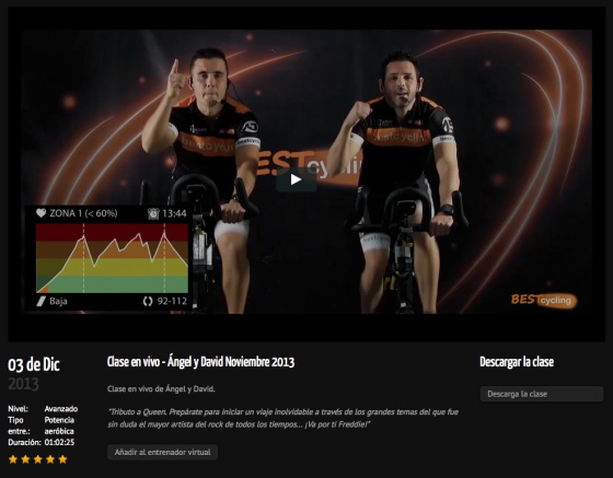 Las virtuales se proyectan en la pantalla de cine. He asistido a cuatro en el mes que llevo. No he contado más de cinco asistentes. Esta clase se parece menos a una discoteca y más a un videojuego. Además del profesor, sobre la lona aparece una línea de tiempo, un contador y la rutina en forma de montaña. La iluminación es fija, no es susceptible de provocar un ataque epiléptico. El instructor da al play y nos deja solos. Lo que sigue son 45 minutos de pedaleo y en este caso Queen. Los dos profesores que aparecen en pantalla han preparado una sesión basada en los discos de la banda británica. No sé si fue la intimidad de la clase, las endorfinas o We will rock you, pero esos dos fornidos hombres consiguieron que casi una hora después acabara golpeándome el pecho y levantando los brazos como ellos.