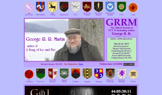 6. Además de por sus libros, George R.R. Martin, el creador de la saga Canción de Hielo y Fuego, es conocido internacionalmente por su vieja web. Mucha HBO, muchos millones de libros vendidos, pero la casa digital de su autor tuvo durante años un aspecto medieval. Hoy la ha mejorado notablemente pero sigue siendo inapropiada para uno de los escritores más leídos del mundo. Al bueno de Martin, entendemos, todo esto le importa tan poco como cargarse a sus personajes más queridos según se levante por la mañana.