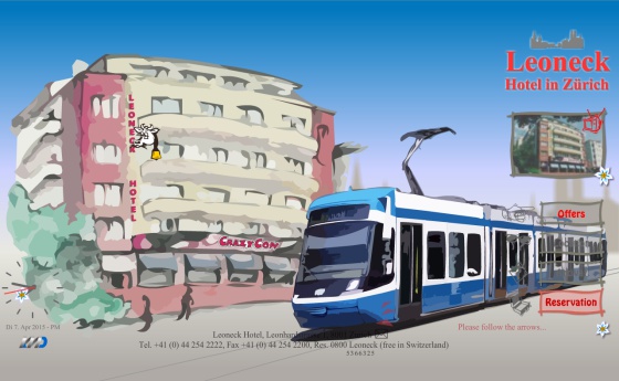 7. El sector turístico debería saber que en el año 2015 un cliente potencial puede rechazar una oferta sin pensarlo si el site que la contiene es un desastre. Como esta de un hotel de Zurich en la que nos atropella un tren a la entrada, justo antes de que un recepcionista que mueve la cabeza nos invite a pasar. El puntero es una cabra con cara de jirafa cuyo cencerro suena cada vez que nos deslizamos por sus distintas secciones. El mismo recepcionista loco nos acompaña en nuestro recorrido por las habitaciones, maquilladas con los peores efectos de Photoshop.