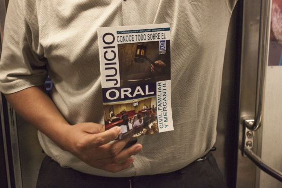 5. Los que te ayudan a seguir la actualidad. ¿Quién no se ha topado alguna vez con la incómoda situación de tener que presentarse en un juicio? "Civil, mercantil y familiar, todo lo que necesita saber para sus juicios orales", jura el vendedor. "¡Cómo debe ser usted ser en los juiciooos! ¡Trámites, procesos de juicio, demanda y contrademandaaaaa! Diezzz pesooossss!". Los manuales van cambiando con la realidad política del país: cuando México discutía sobre la reforma de los hidrocarburos, en los vagones se vendía la Ley Petrolera.