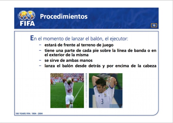 Como explica la Fifa, este tipo de saques deben realizarse frente al terreno de juego, con cada pie en la línea de banda o con ambos fuera del campo, coger el balón con las dos manos y lanzar desde detrás y por encima de la cabeza. Es en este último punto en el que falló Casillas y por el que el árbitro se vio obligado a penalizarle.