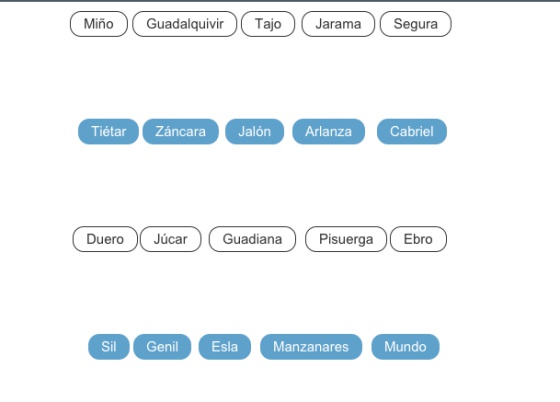2. Ríos. Existen 37 distribuidos por toda España. ¿Cuántos eres capaz de recordar? La versión más sencilla, que incluye un desplegable con los principales nombres de los ríos, la encontraréis aquí. Los de nivel avanzado pueden intentarlo localizando en tres minutos los ríos que propone en este juego.