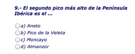 5. ¿Cuántas montañas españolas tienen una altura superior a 4.000 metros? Este TriviTEST incluye un mezcla de preguntas sobre cumbres, montes, puertos y picos. Además de elegir la respuesta correcta, un cronómeto medirá el tiempo que tardas en resolverlo.