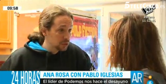 Hemos hablado de todos los detalles que hemos visto en el vídeo pero hay una gran ausencia que nos ha llamado la atención, ¿dónde está el perro de Pablo Iglesias? Sí, ese perrete con el que salía en una de las primeras imágenes famosas del político (una foto de Marta Jara para El Diario). Ana Rosa le pregunta si vive solo y él dice que sí, y que le gustaría tener un perrito. Bueno, realmente la perra (que se llama Lola) pertenecía a Tania Sánchez, así que imaginamos que se quedó con ella tras la separación.