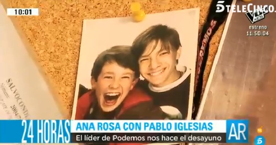 Ana Rosa no solo ha entrado en la cocina, sino que también se ha asomado al despacho de Pablo Iglesias, donde, además de la imagen de sus padres en el entierro de los abogados de Atocha que muestra a cámara, hemos podido ver algunas fotos de Pablo Iglesias de pequeño acompañado de lo que creemos que eran sus amigos: una con un gorro de Papá Noel, otra sonriendo en un fotomatón y la orla de la universidad.