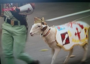 Un rey, 3400 soldados, 50 aviones, 40 tanques, 1 cabra y 800.000€ para celebrar el genocidio del pueblo nativo americano. #NadaQueCelebrar