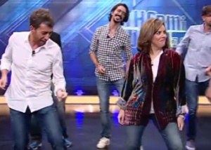 Continúa el espectáculo político de precampaña en los platós de televisión de programas de entretenimiento. Si la vicepresidenta Soraya Sáenz de Santamaría bailó y Pedro Sánchez se limitó a mostrar sus habilidades de baloncesto, Pablo Iglesias dejó una nueva promesa electoral ("Yo me comprometo: si gano las elecciones vuelvo aquí y me suelto la melena", como hizo con Ana Rosa Quintana) antes de coger la guitarra. Eligió una canción sobre "un idiota al que le deja su mujer", que dedicó "a todas esas que están con un idiota y que le deberían dejar". Un tema del fallecido Javier Krahe, con quien el líder de Podemos se subió a un escenario hace justo un año.
