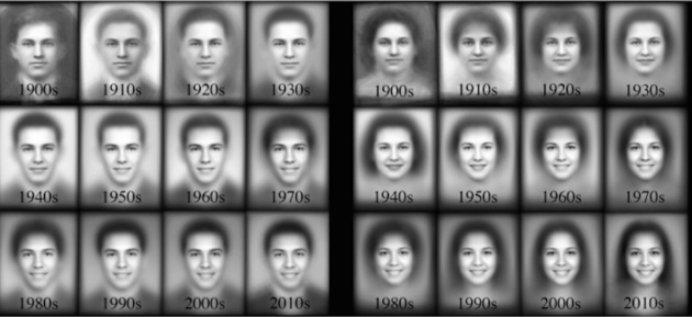 Para este estudio, se emplearon 150.000 imágenes encontradas en anuarios de institutos estadounidenses de los últimos 110 años, de las cuales se desecharon aquellas que no eran retratos frontales. Quedaron entonces 38.000 fotografías restantes que engloban cerca de 800 anuarios procedentes de 26 estados diferentes del país norteamericano.