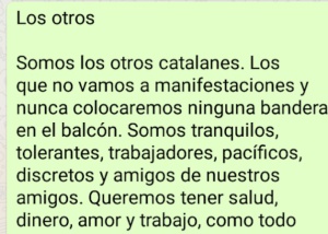 "La colgué en el balcón a las pocas semanas de entrar en el piso, después que mi compañero Marc decidiese colgar la española con el toro de Osborne y todo", explica Adriá. "Pensé que si íbamos a colgar la bandera de España, qué menos que estuviese mi bandera de España como mínimo. Y así poco a poco se fue llenando el balcón. "Mi bandera es la independentista, fue un regalo de mi padre y decidí colgarla para expresar mi sentimiento como catalana y mi apoyo al proyecto independentista", nos explica desde Barcelona Amanda, nacida en Tivenys, un pueblo de Tarragona. "Creo que es un medio de expresión que permite ver que nuestras diferencias políticas o ideológicas no entorpecen nuestra convivencia; al contrario, nos aportan diferentes puntos de vista que resultan muy refrescantes".