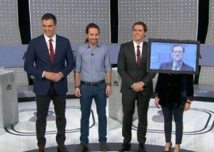 Que empiece la carnicería. @Sorayapp @Albert_Rivera @Pablo_Iglesias_ @sanchezcastejon #7dElDebateDecisivo pic.twitter.com/YX3BQvhqS2
