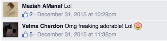 En esa línea se manifestaba por ejemplo la usuaria de Facebook Sarah Haley: "Si el gato no hubiese querido hacer esto no lo hubiera hecho. Lo normal es que estos disfraces solo tapen la cabeza, así que el gato se lo puede quitar. Estoy también bastante segura de que no se hubiese sentado en esa mesa rodeado de fruta mientras su dueño le muestra un plátano, si no hubiese querido. Algunos gatos se sentarían en cualquier sitio (3 o 4 de los míos permiten que mi hija pequeña los mueva, abrace y juegue con ellos de mil maneras sin oponer resistencia) y otros gatos, no (uno de los mios te pisotearía hasta la muerte mientras se va por la ranura de la puerta). Por favor, traten de entender esta publicación como algo alegre, que es para lo que estaba pensada. El gato NO está en peligro. Año nuevo gatuno".