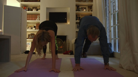 Después de tantas emociones, normal que Obregón quisiera practicar algo de yoga con Osborne. Practicaron la postura del “perrito bocabajo”, entre otras.