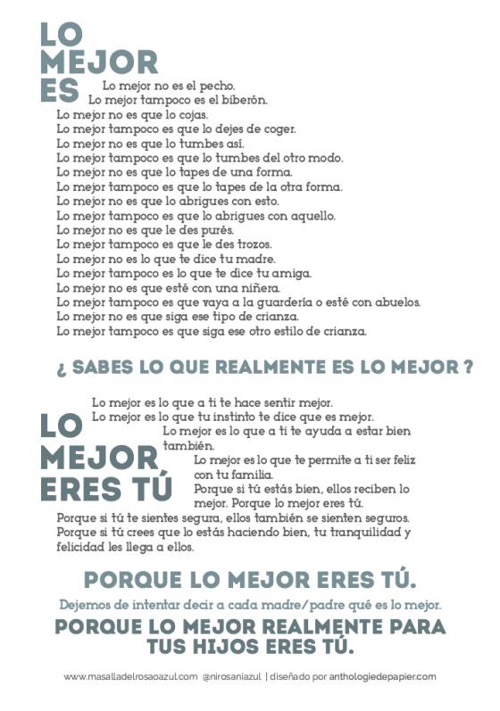 Lo mejor no es el pecho. Lo mejor tampoco es el biberón.Lo mejor no es que lo cojas. Lo mejor tampoco es que lo dejes...