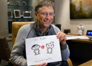 "Estoy encantado de estar de vuelta para mi cuarto AMA (siglas de Ask Me Anything, pregúntame lo que sea)", anunciaba Gates en el mensaje de presentación del foro. "Para mi imagen de verificación he recreado la foto de mi anuario del instituto".