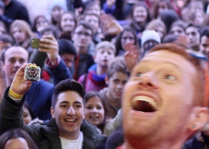 En un vídeo publicado por los organizadores puede verse el momento en el que una mano emerge de la multitud y agarra la gorra del youtuber. Sucede en el minuto 1:35.