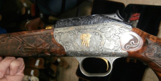 Rifle Blaser R93: 19.000 euros. Es un modelo personalizado con incrustaciones en oro, maderas talladas y el maletín original del fabricante. De Blaser también se vende una pareja de escopetas (versión de lujo del modelo F3) por 11.600 euros.