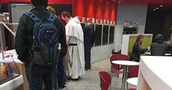 Jude McPeak, fraile dominico miembro de la iglesia católica de San Pablo, salió a comprar yogur helado en el campus de la universidad de la ciudad estadounidense de Bloomington, vestido con su hábito y un rosario.