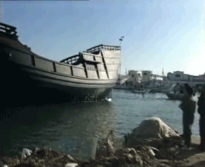 Veamos de nuevo el vídeo y apreciemos los detalles: se nota toda la ilusión de las autoridades dando el botellazo, vemos el barco emprendiendo su viaje, a Curro dando botes y, finalmente, el barco escorándose hasta volcar mientras se oye de fondo “joder, joder”.
