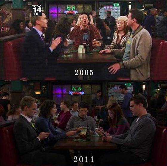 Tampoco tengo problemas con la parte supuestamente antisocial de los móviles, una queja que ni es nueva ni es exclusiva de los teléfonos: “En el siglo XVII, los lectores de periódicos en las cafeterías eran considerados antisociales que se complacían en un silencio hosco”, escribe Michael Harris en The End of Absence. ¿Qué se supone que tengo que hacer mientras espero el autobús? ¿Ponerme a hablar con un desconocido?
