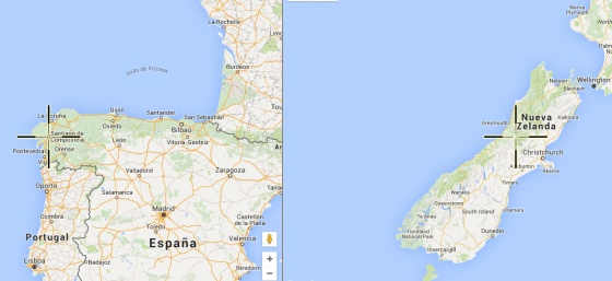 En el caso de España, como puede observarse en este mapa, no está en Australia, sino en Nueva Zelanda y el mar circundante. La antípoda de Australia, por su parte, estaría en mitad del océano Atlántico.