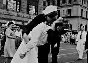 Al igual que ocurre con la foto del beso más famoso de internet, el de un marinero a una enfermera en Times Square en 1945, también dos fotógrafos capturaron el momento. Dos filas más atrás más atrás de Leifer se encontraba John Rooney, que con su “semiautomática” inmortalizó el mismo momento en blanco y negro: