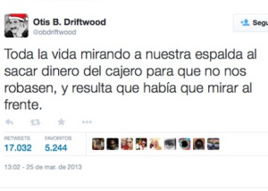 De hecho, la Masa no tuitea desde el jueves pasado y el comunicado lo ha publicado en Twitter la revista Mongolia. Más tarde lo recogía también Hipertextual. En este texto, escrito íntegramente en mayúsculas (como todos sus tuits), los responsables de la cuenta se despiden explicando sus motivos y, de paso, citando a algunos de sus archienemigos, como Hermann Tertsch, Esperanza Aguirre, Sigfrid Soria y Percival Manglano, entre otros.