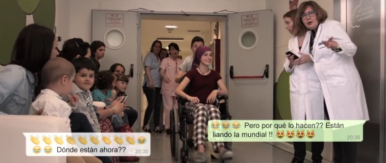 Pronto el blanco y negro da paso al color, cuando el plano se traslada a la unidad infantil del hospital, donde se puede ver a un grupo de niños tramando una travesura con la melodía a lo Dire Straits de Fito sonando de fondo.