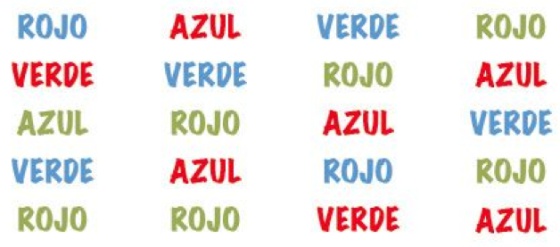 Se trata de un buen ejemplo del llamado efecto Stroop. El psicólogo John Ridley Stroop publicó en 1935 publicó un estudio sobre cómo las interferencias afectaban al tiempo de reacción mientras llevamos a cabo una tarea.