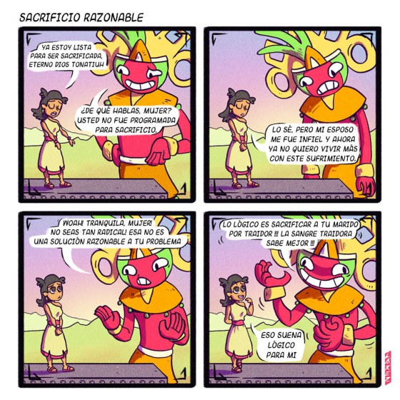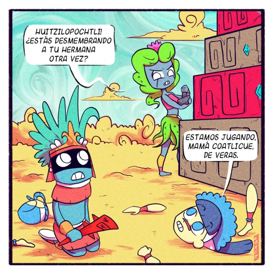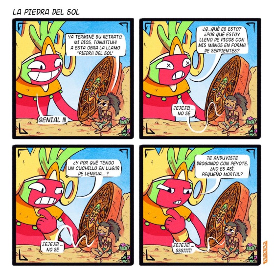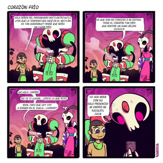 Más allá de que la época prehispánica es una de las favoritas de este ilustrador, él asegura que la cultura prehispánica dice mucho del mexicano y por eso la retoma en su trabajo: “Es parte de nuestras raíces. Las leyendas, cuentos y mitología nos definen y no muchos las exploran. A raíz de que empecé a compartir mi trabajo en redes he notado que cada vez más personas se interesan en la cultura prehispánica”, relata a Verne vía telefónica. Abajo publicamos algunas de las tiras cómicas con permiso del autor.