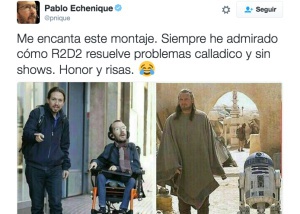Además de este vídeo, Lets Zink lleva meses publicando tanto en su página de Facebook Spain Wars como en Twitter carteles propagandísticos en los que mezclan el imaginario de Star Wars con personajes políticos.
