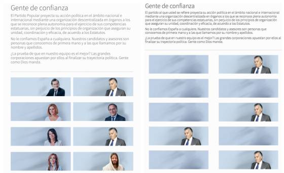 El PP ya no tiene motivo de queja: es imposible que cuele el argumento de que alguien podría confundirse y creer que se trata de una página real del partido. Ni siquiera se menciona su nombre. Aunque todos sepamos de qué partido se habla, claro.
