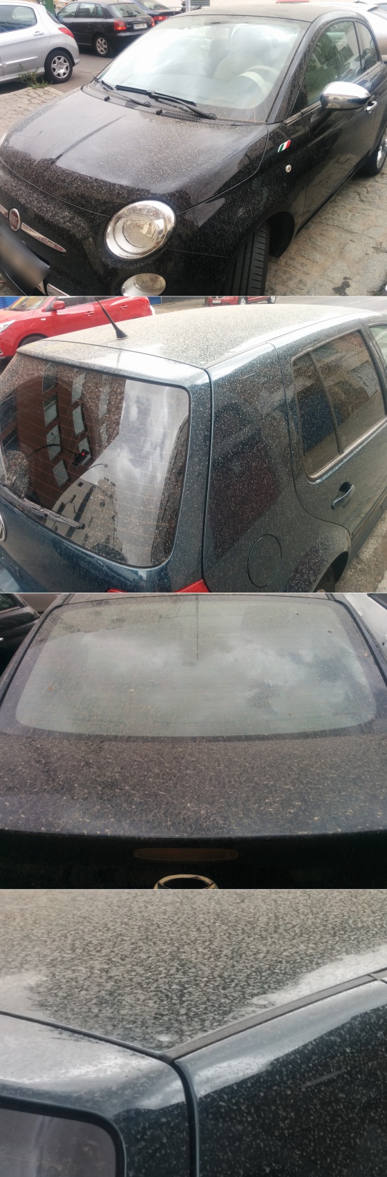 Los cielos de buena parte de España amanecían el pasado miércoles nubosos y con un color inusual, que desembocaron en lluvias con barro a lo largo del día. El testimonio de esas precipitaciones permanece en muchos de los coches aparcados, que muestran los restos de suciedad que acompañaba a la lluvia.