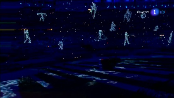 En Río, Japón hizo un despliegue de futurismo y tecnología. Unos robots colocaron la bandera japonesa en el centro del estadio mientras las luces marcaron la coreografía de unos hologramas transformados en bailarines.
