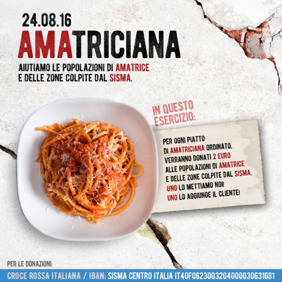 Unos 700 restaurantes italianos se han adherido a una propuesta solidaria a base de comer pasta a la Amatriciana para ayudar a las víctimas del terremoto que este miércoles asoló el centro de Italia. La idea la lanzó el bloguero y fundador de la plataforma Bloggokin Paolo Campana en Facebook. Por cada plato consumido con la popular salsa se donarán dos euros para las víctimas del seísmo. Los espagueti cocinados con esa famosa mezcla de tomate, panceta y queso proceden del pueblo de Amatrice, uno de los más tocados por el temblor de tierra, donde los próximos 27 y 28 de agosto se iba a celebrar la 50 edición de un festival gastronómico en torno a su salsa.