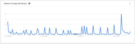 Los 'martes 13' también generan picos de búsquedas en Google, como refleja este gráfico de tendencias en el buscador en España.