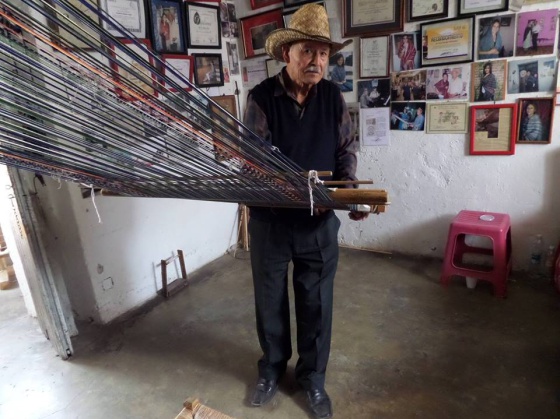 3. Se tejen los lienzos en telar colonial o de pedal y a su término se corta se anuda y se emparejan las puntas.