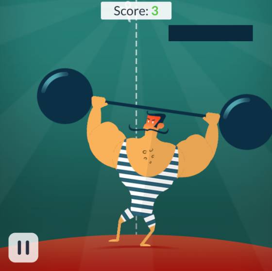 Mr. Muscle. El juego consiste en partir una barra de acero en dos. Como cada pieza se suma al peso que sostiene el musculoso protagonista, hay que hacerlo de la forma más equilibrada posible para que el pobre hombre no se caiga a un lado.