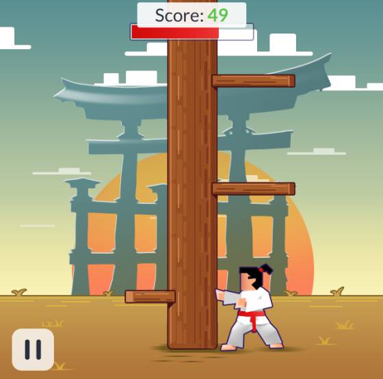 Karate Kido. Hay que ir dándole patadas y puñetazos a un árbol infinito para arrancar trozos de madera sin golpearnos con las ramas.