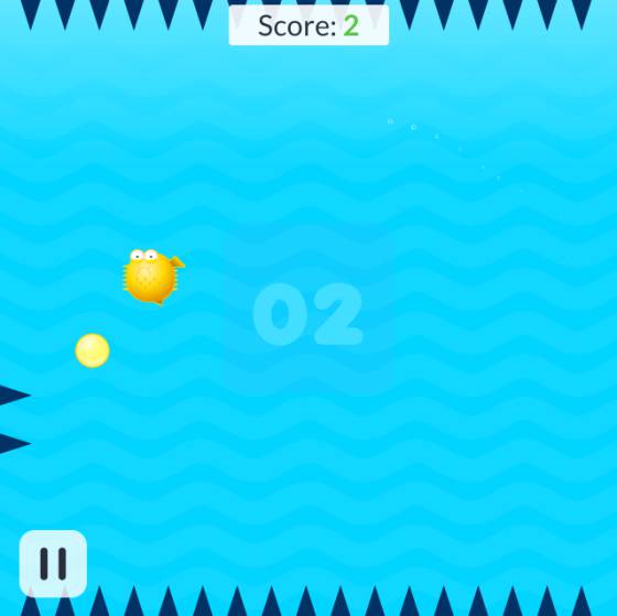 Spiky Fish. Tenemos que impulsar un pez globo para evitar que se dé con los pinchos del suelo. Por desgracia, también hay pinchos en las paredes y en el techo. Por cierto, hay un solo botón para impulsar al animalito: su dirección solo cambia cuando se da contra la pared. La mecánica me ha recordado a los juguetes de agua ochenteros que fabricó Geyper.
