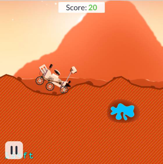 Mars Rover. Hay que maniobrar por Marte para encontrar agua. El Rover puede volcar o caer con la suficiente fuerza como para que se rompan las ruedas. Puede, pero no debe, claro.